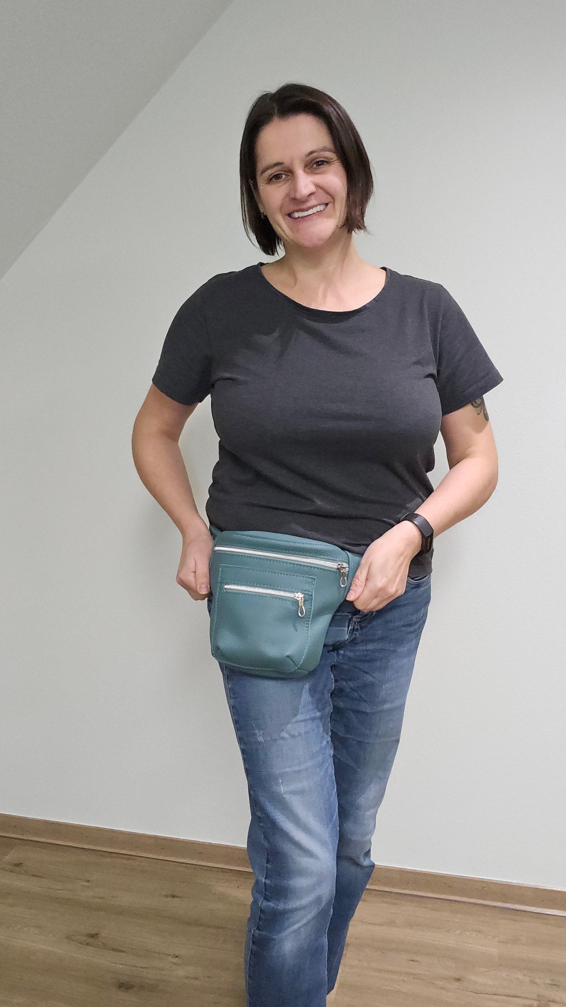 Ich habe diese Hipbag ursprünglich für mich entworfen. Für Situationen, in denen ich beide Hände frei haben möchte und trotzdem das Wichtigste dabei sein soll (Portemonnaie, Handy, Schlüssel...).