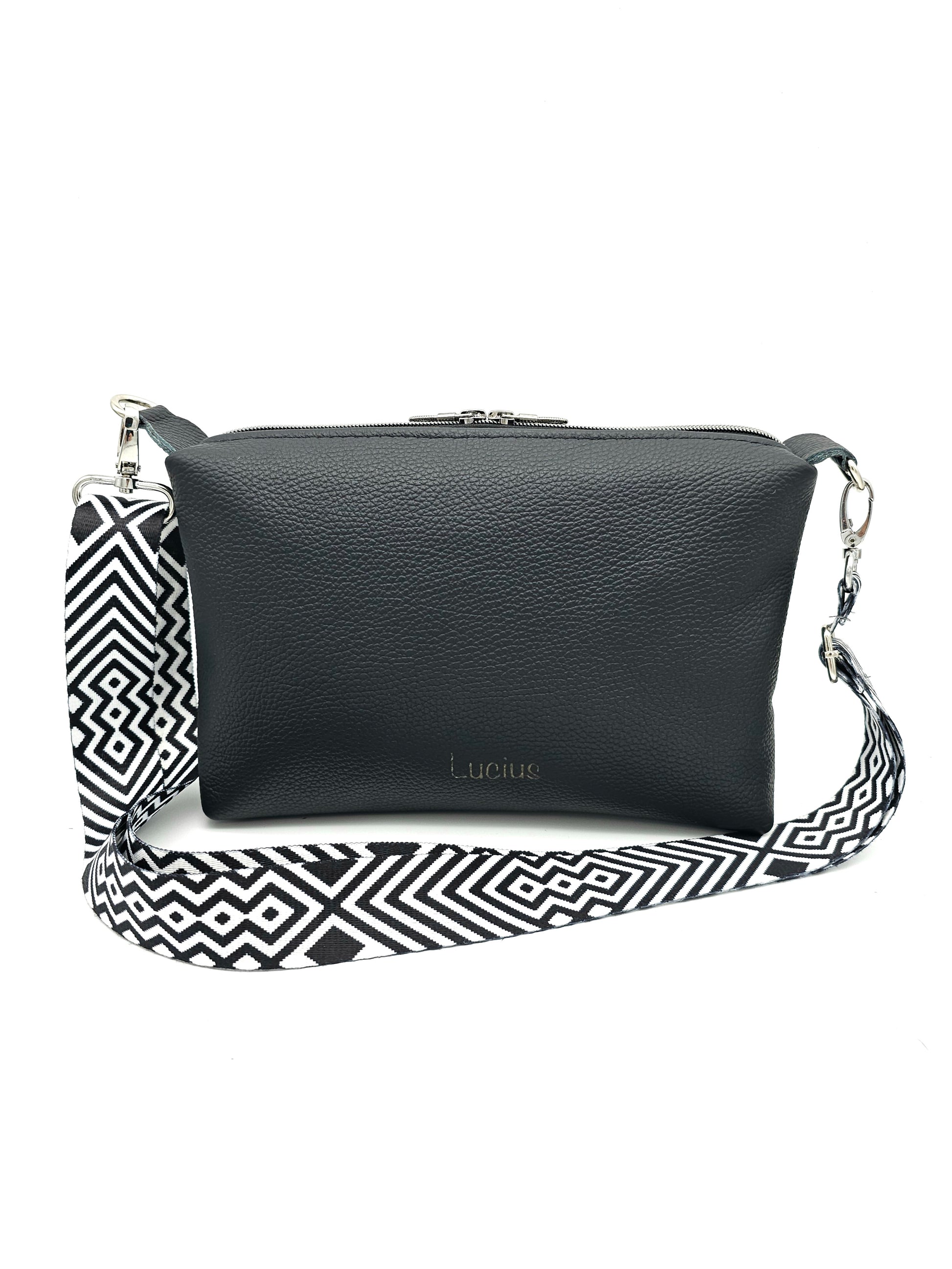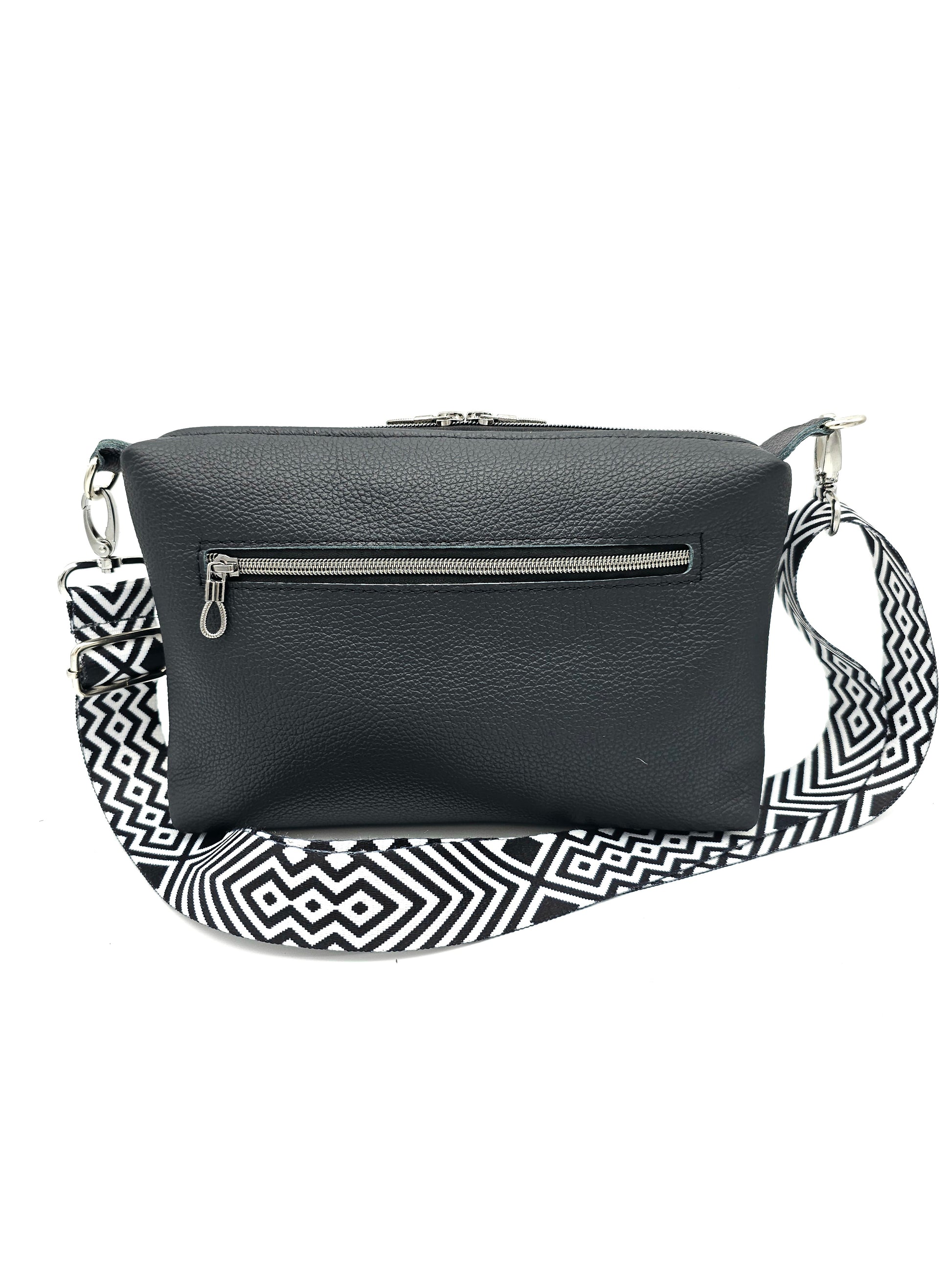 Die klare rechteckige Form ist praktisch und modern. Ein sicherer Reißverschluss oben, eine zusätzliche  Reißverschlusstasche auf der Rückseite, sowie ein hochwertiges Innenfutter aus stabilem Möbelstoff sorgen für Funktionalität und Langlebigkeit. Innen findest du ein Reißverschlussfach und ein Steckfach. Ideal für Ordnung unterwegs. Der abnehmbare, verstellbare Textilgurt ermöglicht verschiedene Tragevarianten.