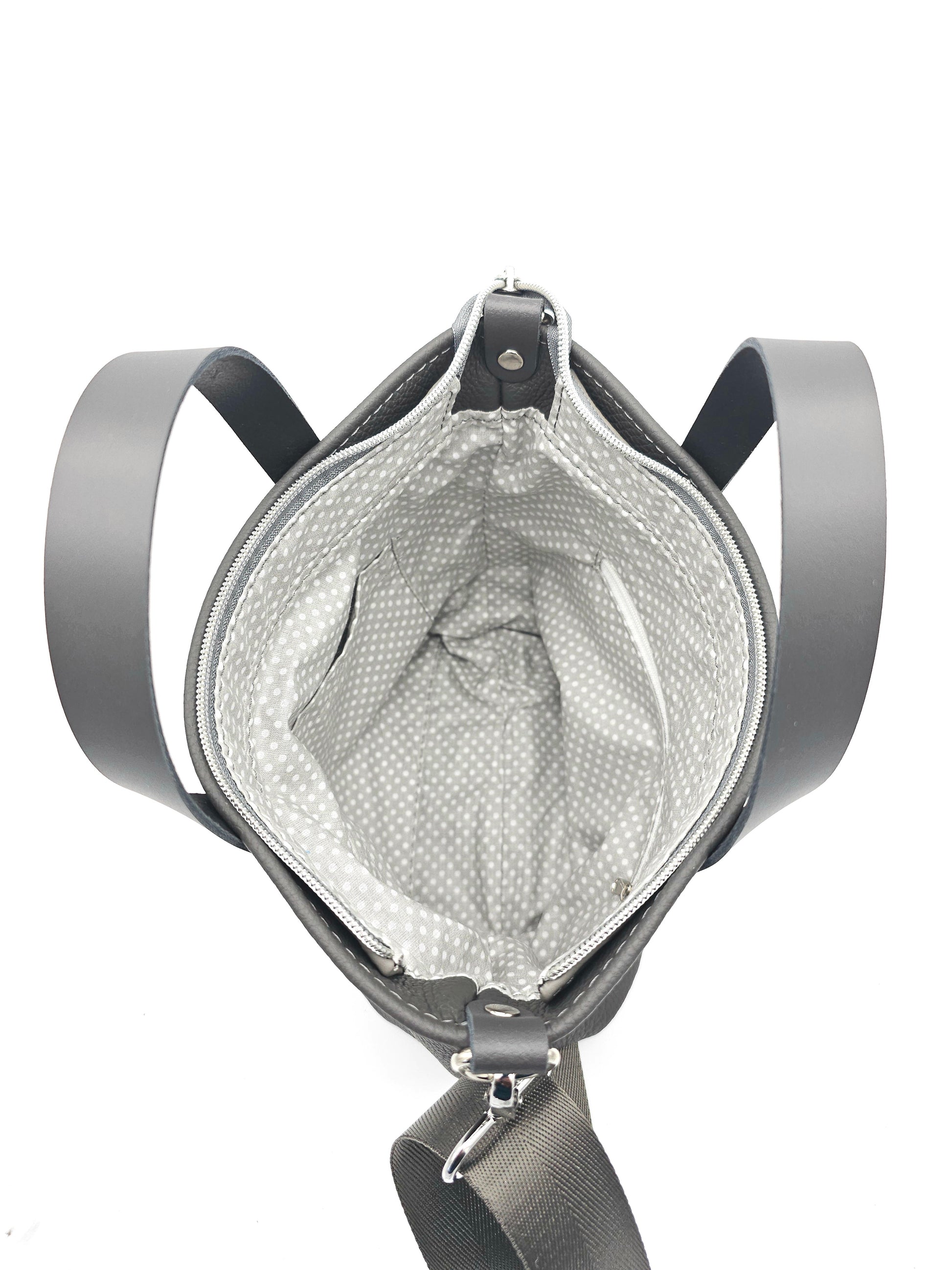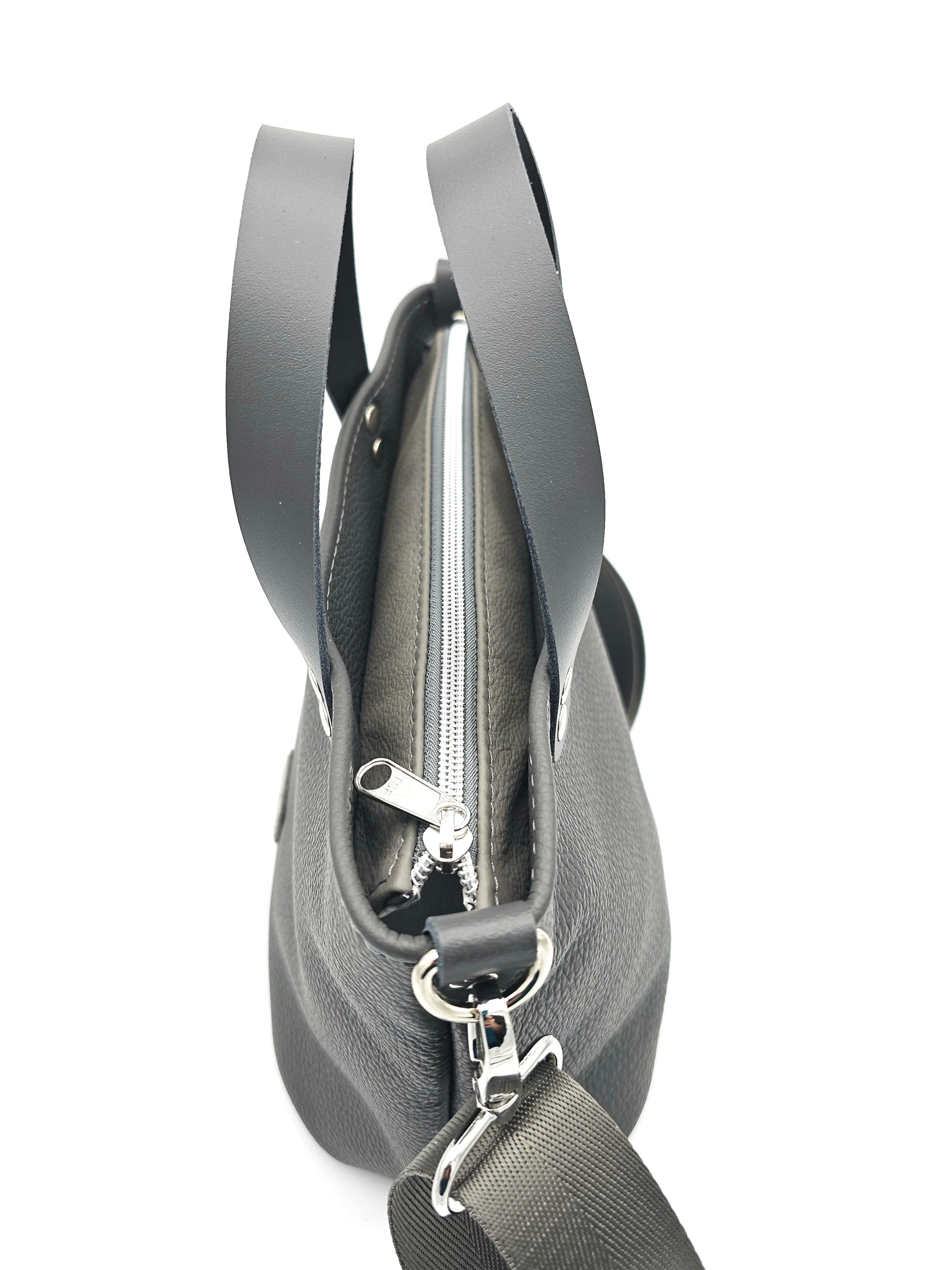 Ledertasche Karin in Dunkelgrau, handgefertigt aus Echtleder