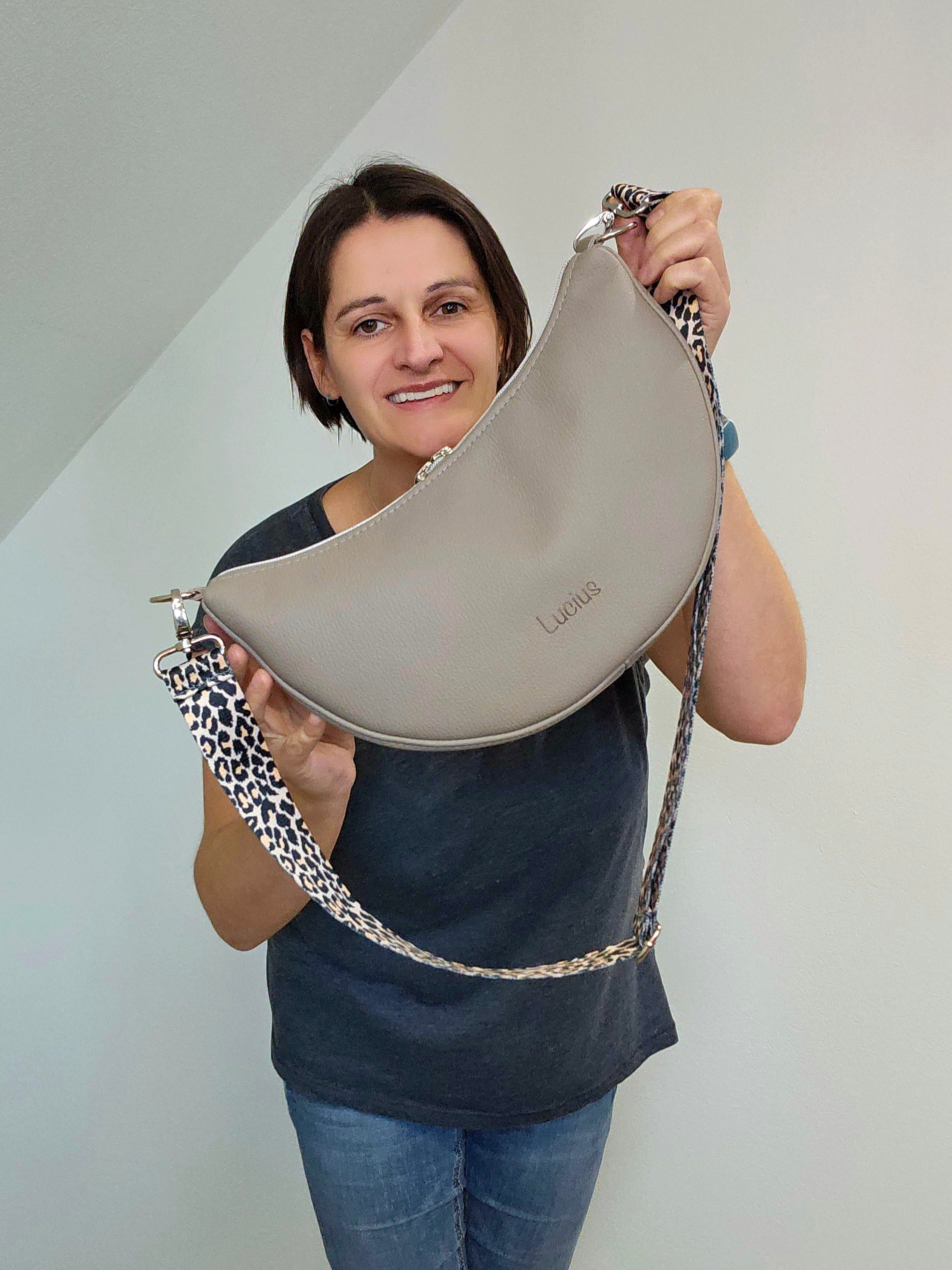Sie ist perfekt für alle, die dezent auffallen wollen und trotzdem eine kompakte Umhängetasche mit elegantem Design suchen. Ihre sanft geschwungene Halbmond-Form schmiegt sich angenehm an den Körper und begleitet dich stilvoll im Alltag, beim Stadtbummel oder abends beim Ausgehen.