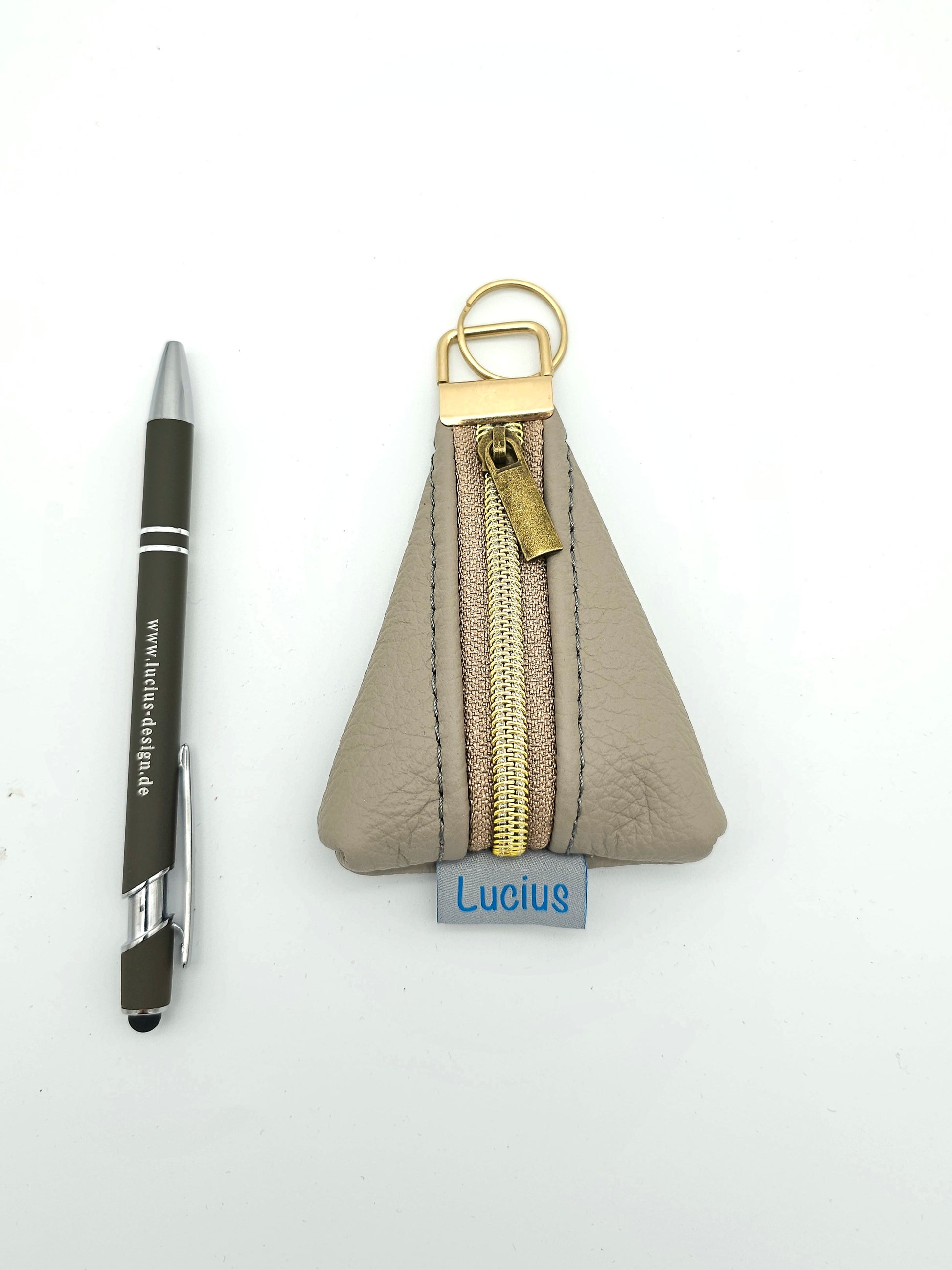 Jedes Täschchen ist ein Einzelstück, denn so haben auch die kleinsten Lederstücke, die es nicht mehr zu einer Tasche geschafft haben, die Chance etwas ganz "Großes" zu werden.