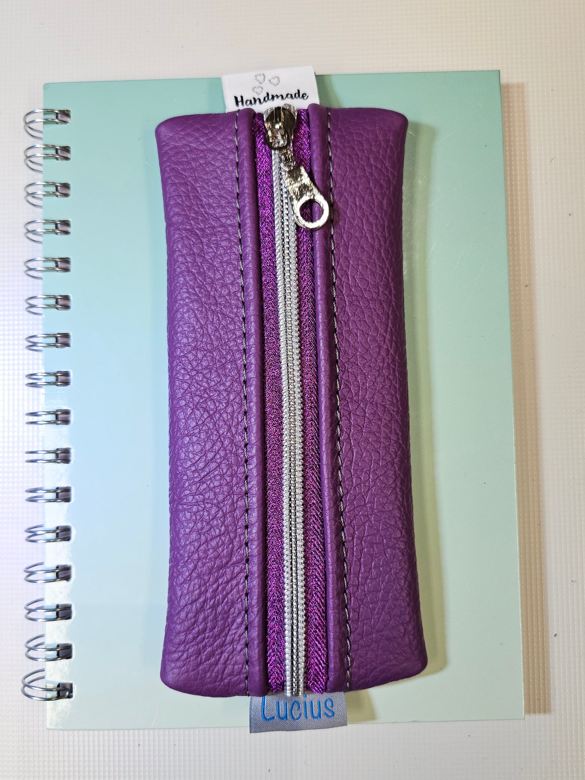 Stiftemäppchen aus Echtleder in Lila und Glitzer