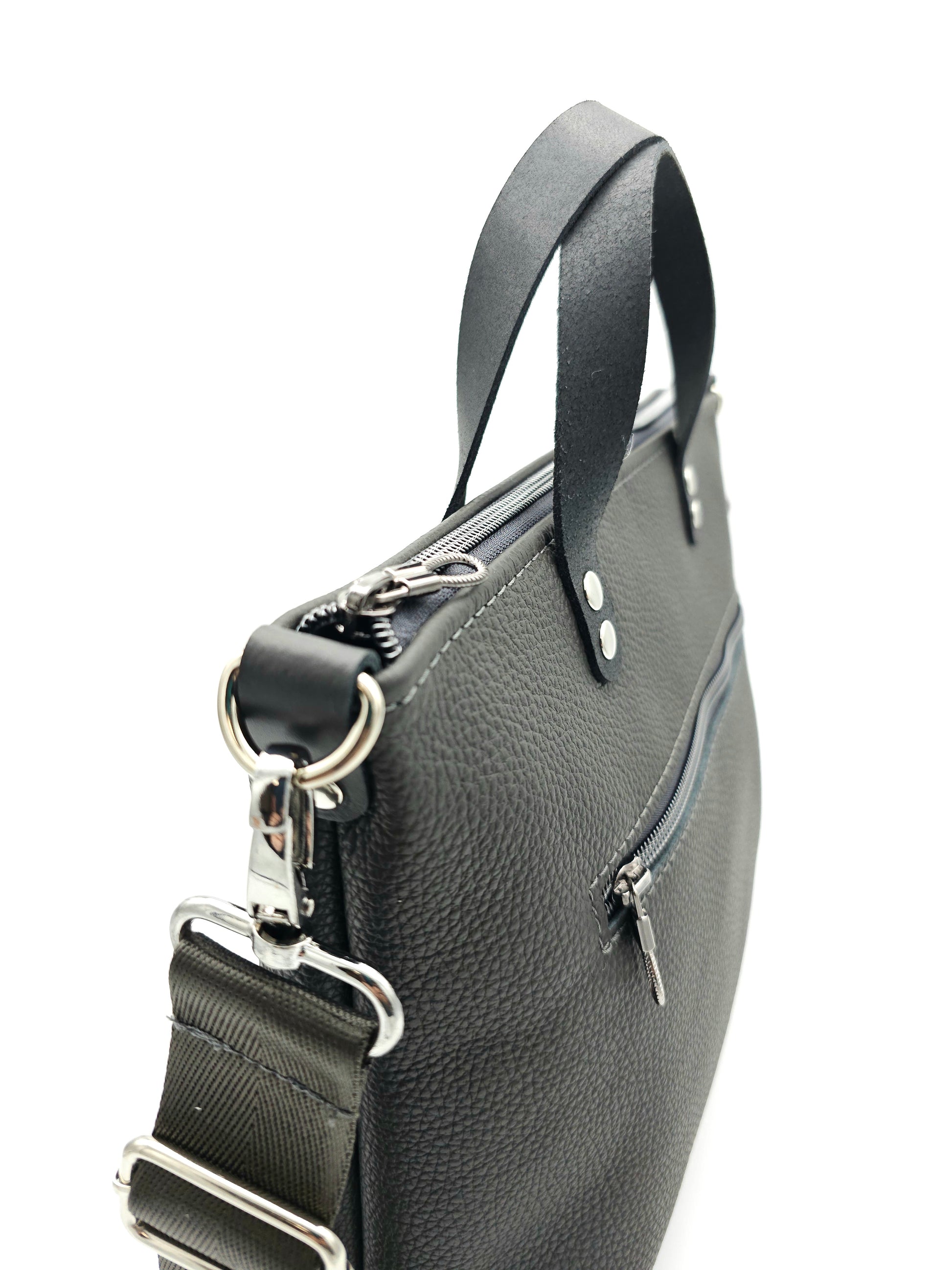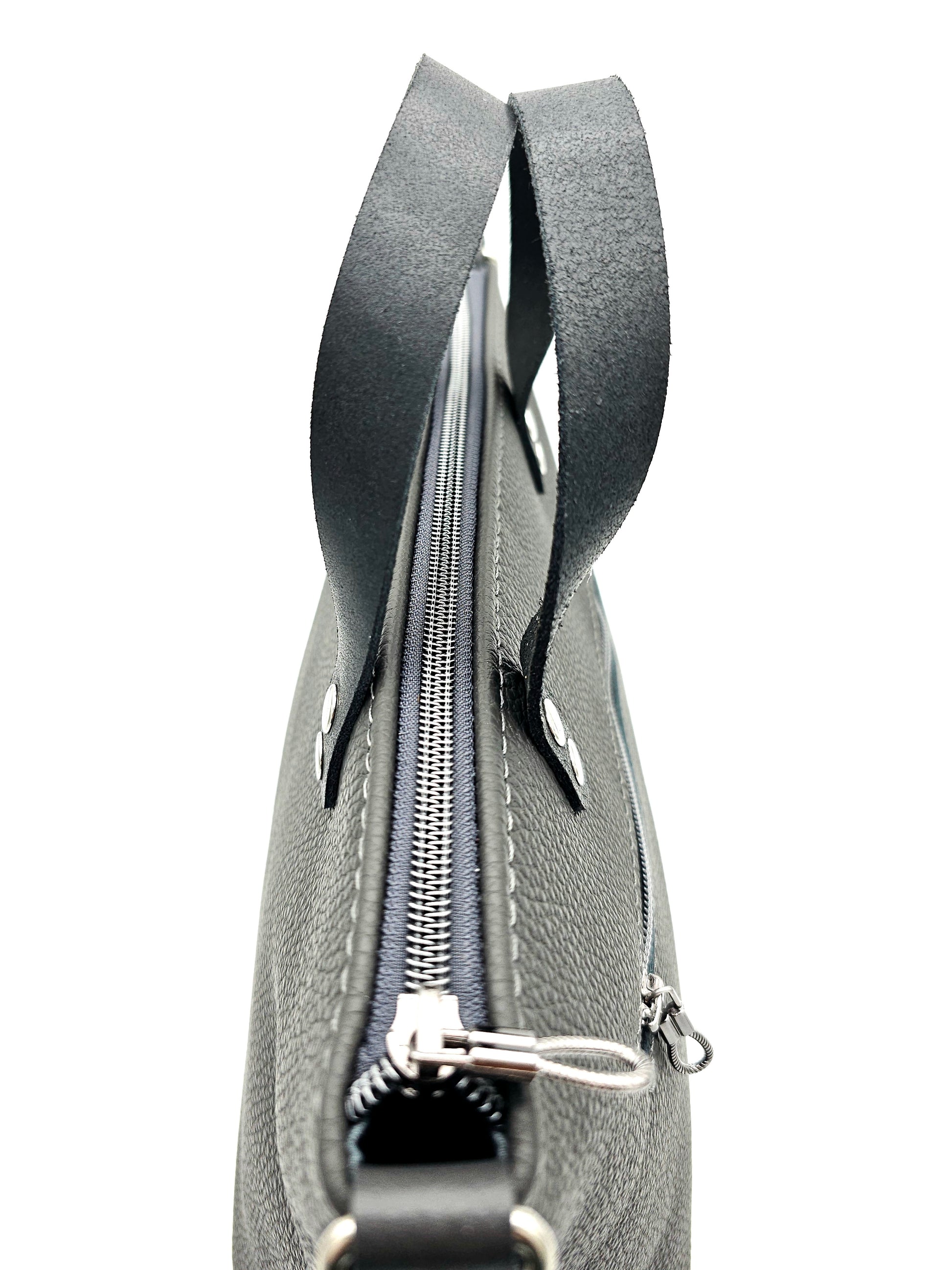 • Zwei kurze Ledergriffe zum Tragen