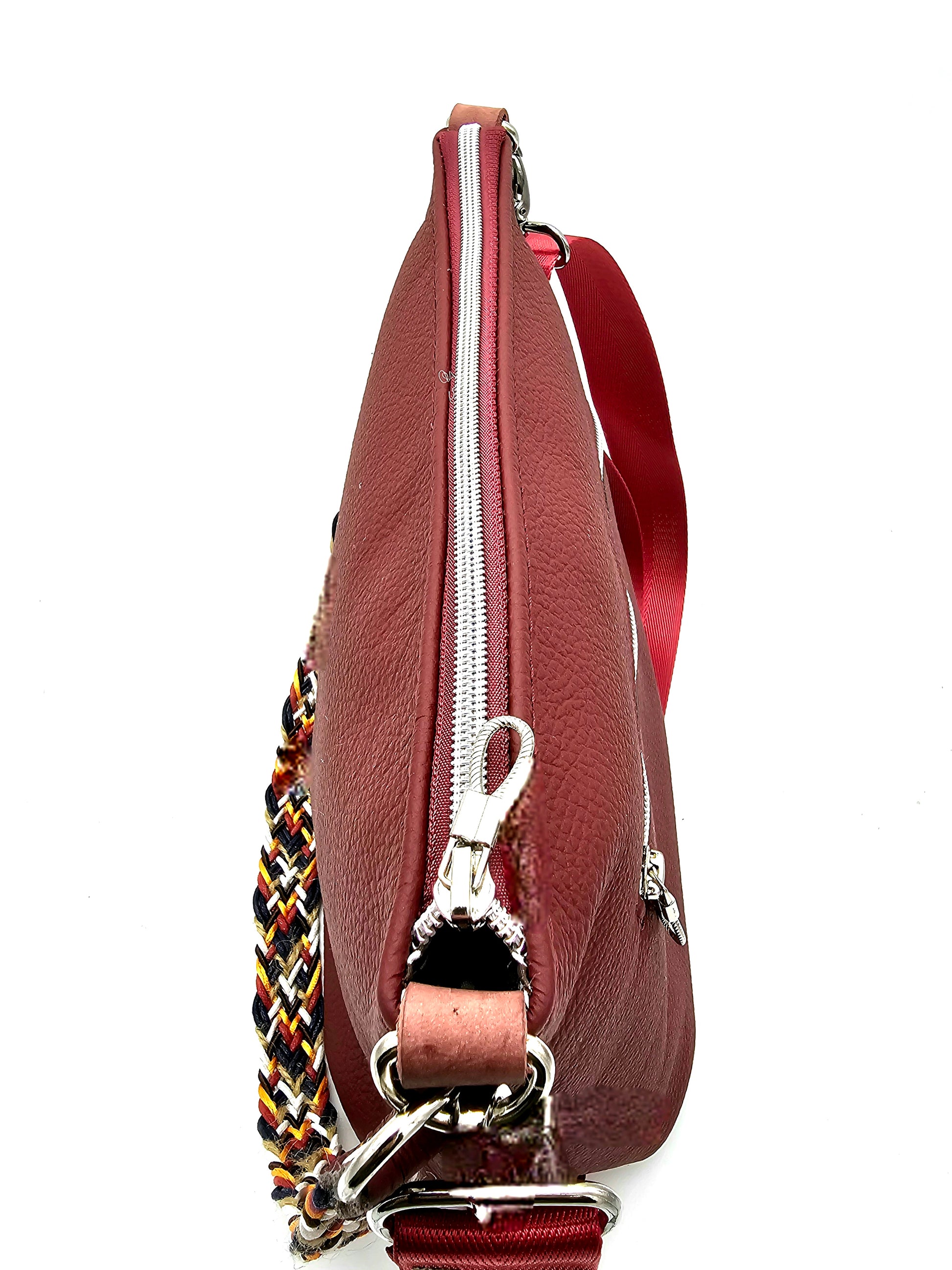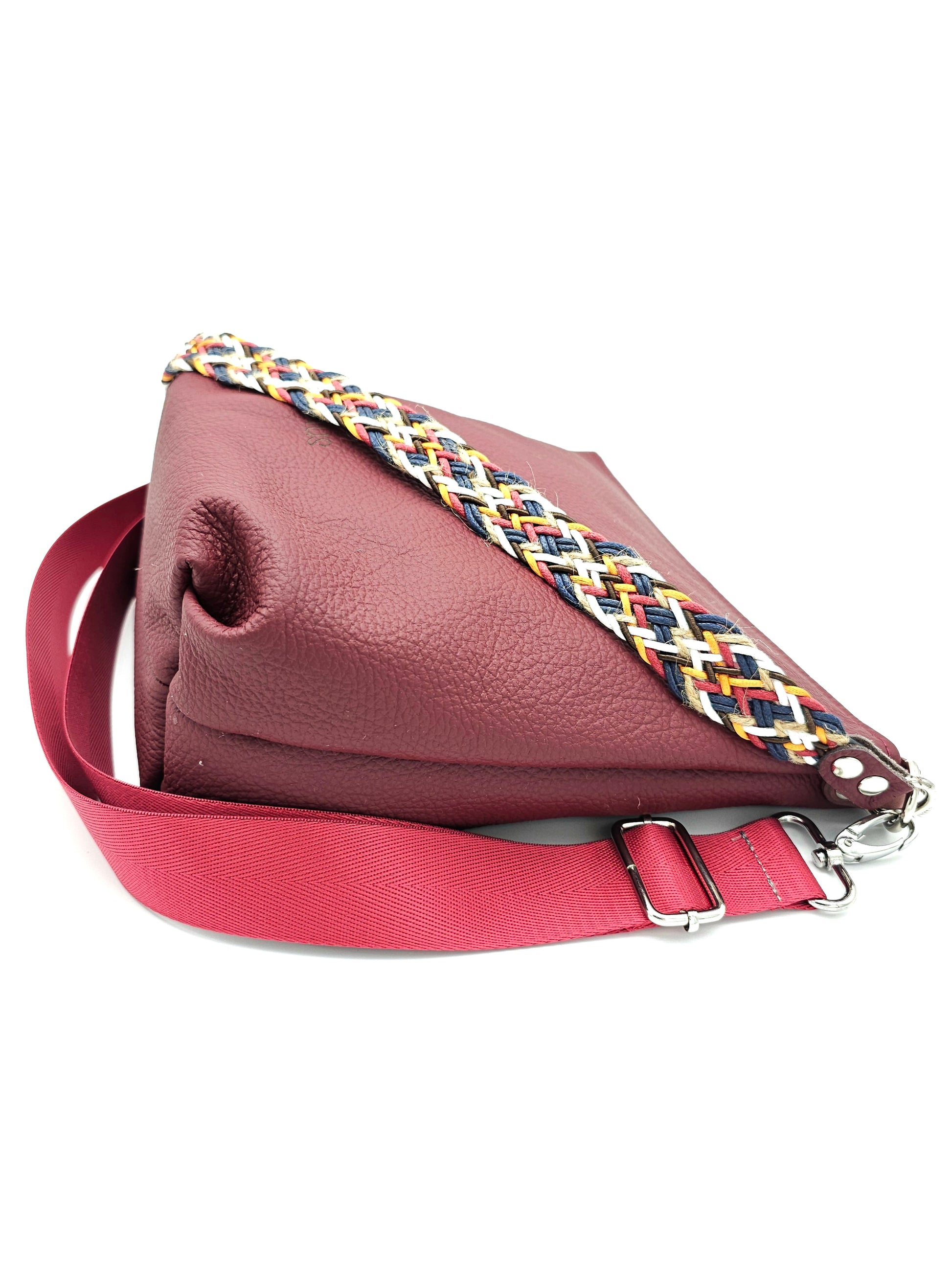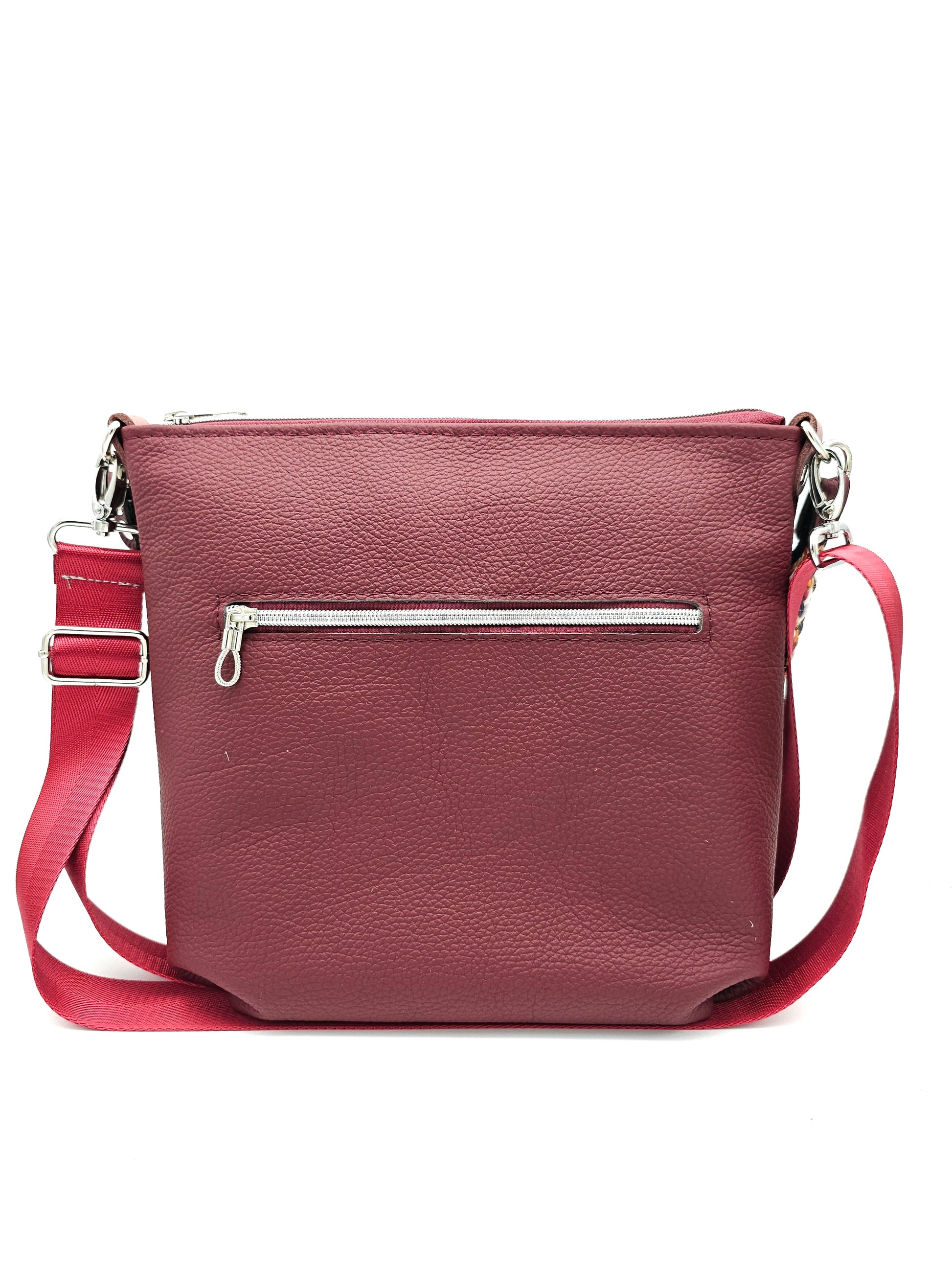 Die Tasche Katja in Weinrot mit extra Schultergurt und Umhängegurt ein sportlich schickes Einzelstück.